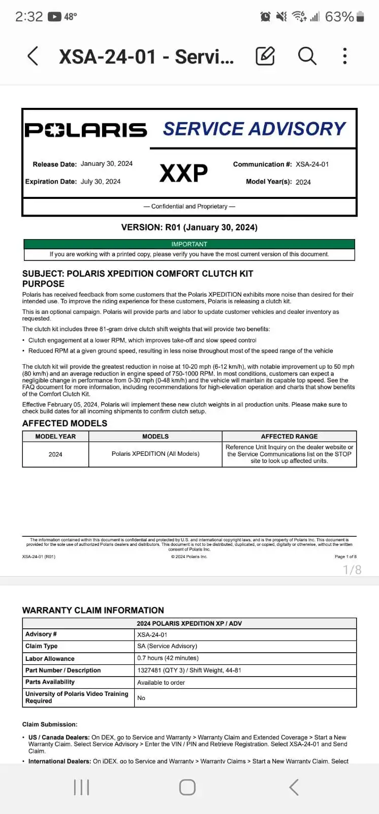 I have the AA clutch kit and will not be going with Polaris clutch weights. I did put 32" Rock A Billy tires on. Each helped a little and both helped a lot with the noise issue. But what fixed the problem of noise was a Rugged Radio with intercom and a good set of headsets. I will not buy Rock A Billy tires again. I just returned from a week in Kanab UT, and driving to and from the trail heads was quite a bit of highway miles. They a very squirrely on pavement, (the center two rows of tread are taller the the rest of the tire face). That is the only part of the tire that is 32". I did not have any problem with the tires or the Xpedition on all the sand trails.