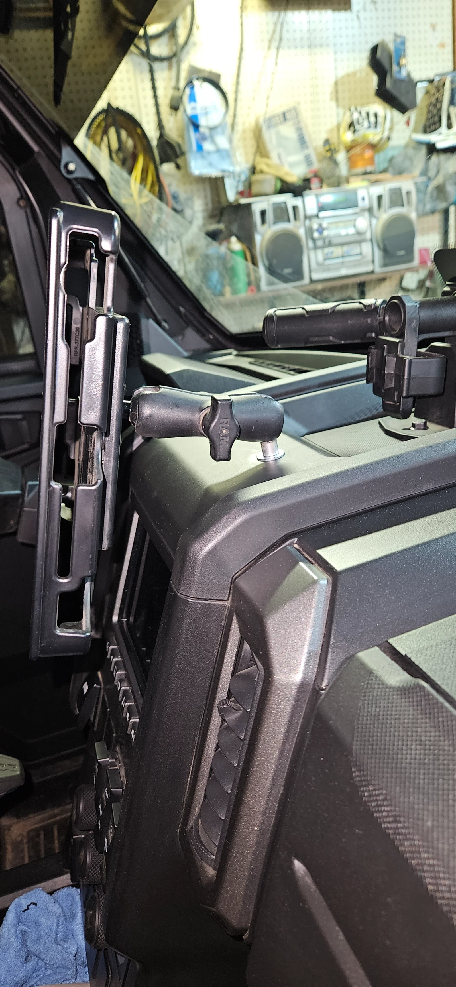 I reluctantly drilled into the dash of my new Xpedition recently to install the AJK Center Dash Panel. It seems solid enough so far, but how the heck do you guys get a nut under it to connect things? I can get to the larger holes on the top, but I have no idea how I'd use the preferable ones on the front without taking it off and reinstalling, and it's only going to loosen up if I do that. Is there a magic attachment doo-hickey I'm missing? Currently just looking to install the Ram Mounts X-Grip with a 1/4" threaded stud.