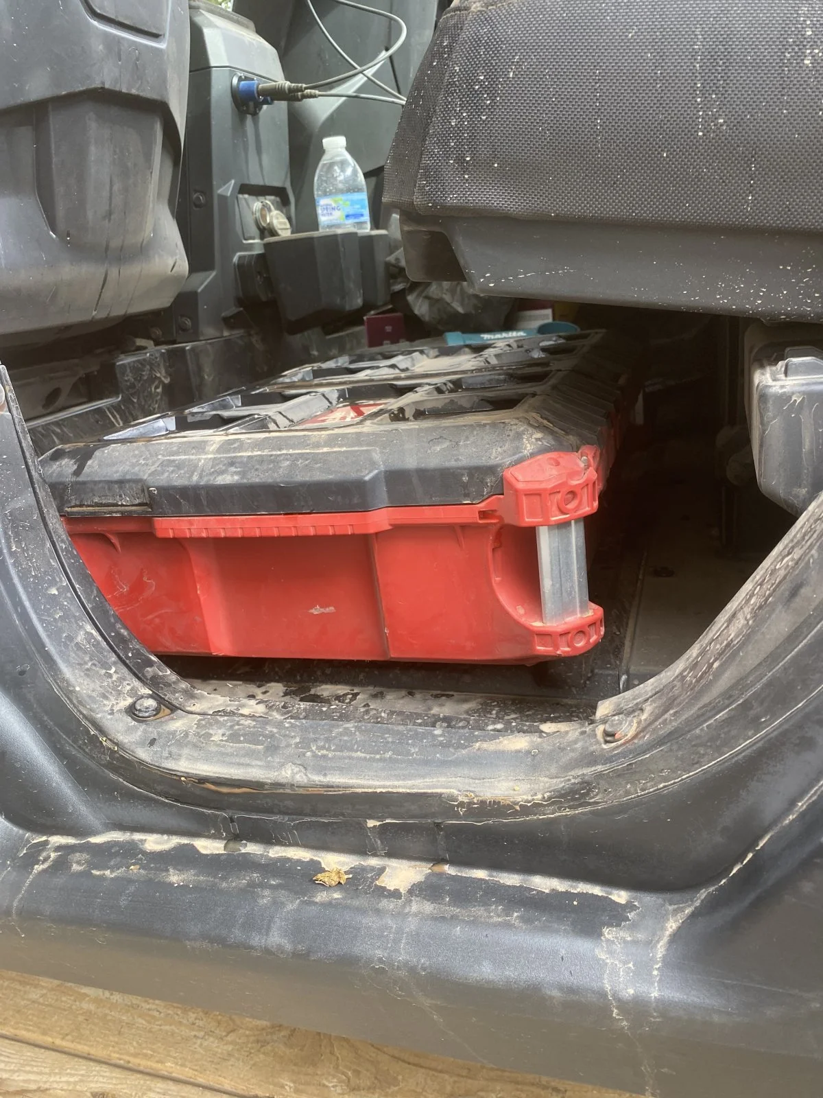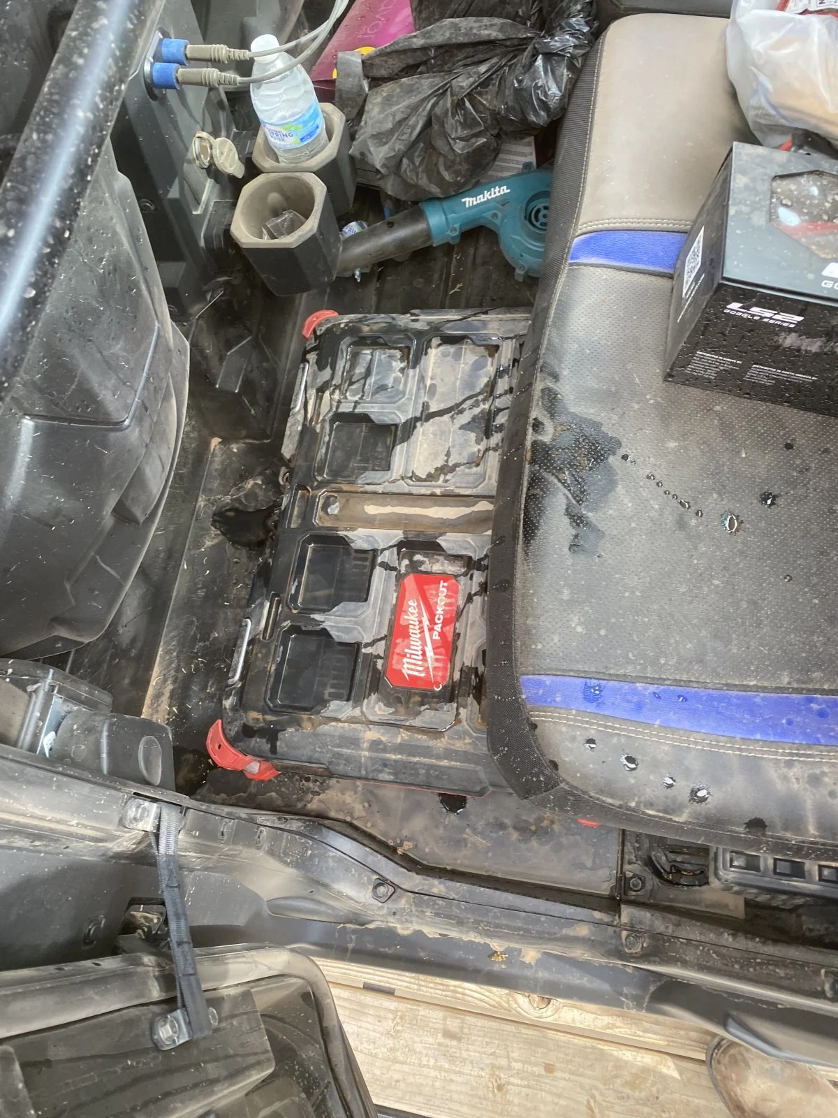 I am still looking for info on the back seats. How much room is under them? Big enough to store tool boxes or Milwaukee packouts? Got any pixs and/or measurement of the space under the back seats?