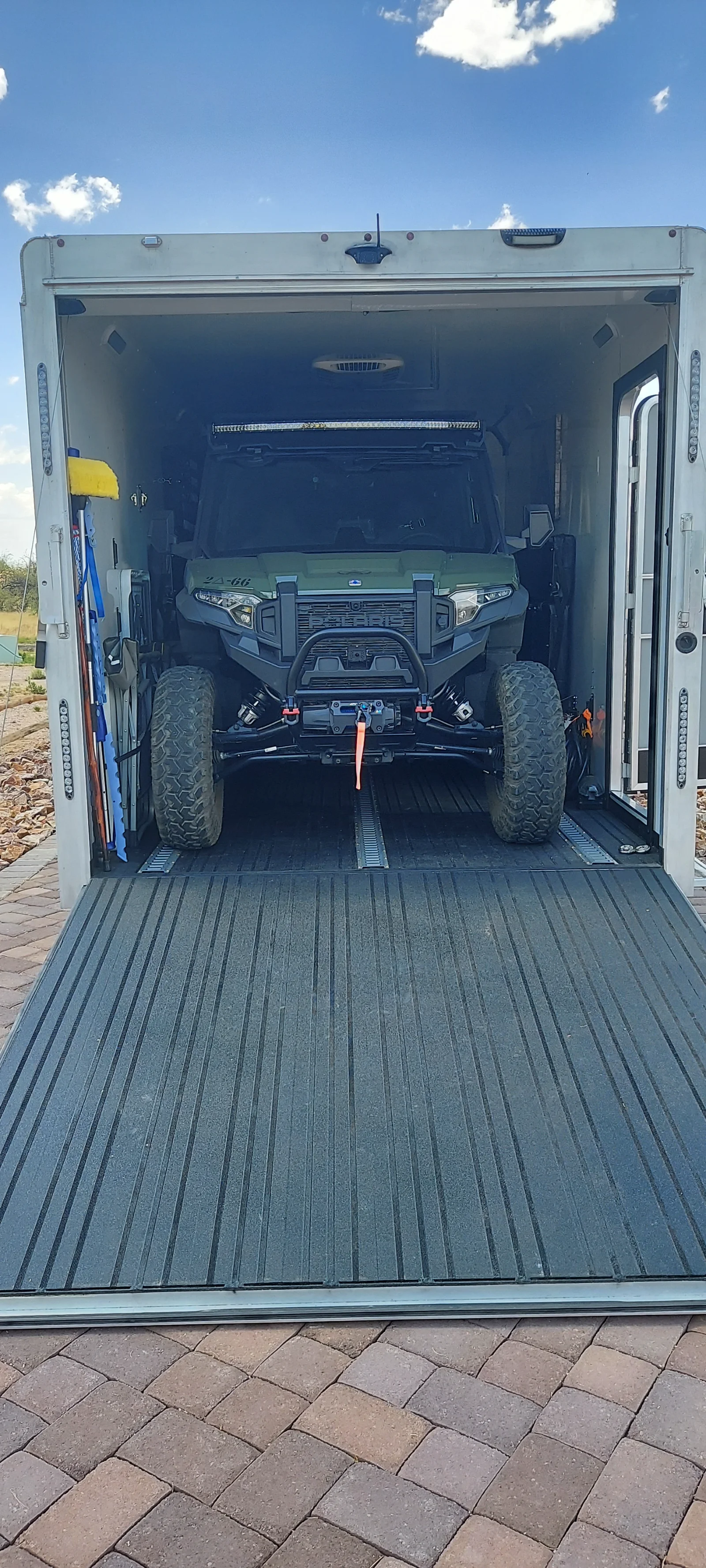 I have a Grand Design toyhauler that we purchased specifically to haul a SxS. We purchased a Polaris Xpedition ADV5 Northstar. Question I have to help with trailer weight distribution. Question, with the weight of the ADV5 being towards the back, should I back the unit into the garage to get bulk of weight over the rear axle?