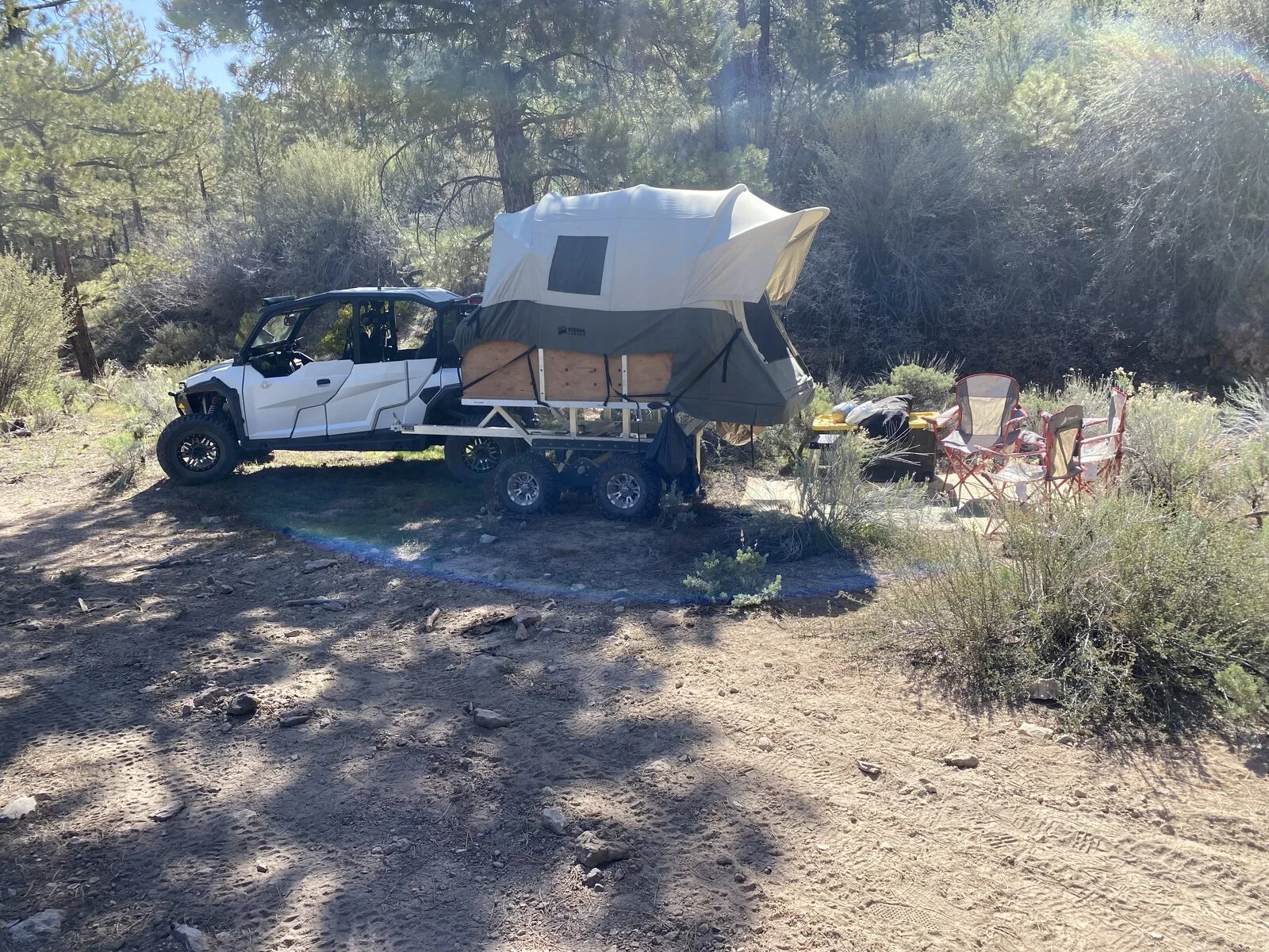 The first trailers were designed to work with the Truck Bed Tent from Kodiak Canvas and the idea is to trade hauling weight for towing weight. Instead of loading up the machine, we’d load the trailer and then go out and base camp. Using these trailers, we can haul much more than we ever could with just the machines which means longer trips and farther away, but also we don’t need to haul all our gear the whole time. We set up a base camp in an area we want to ride and explore and leave everything there except what we need for the day’s ride.