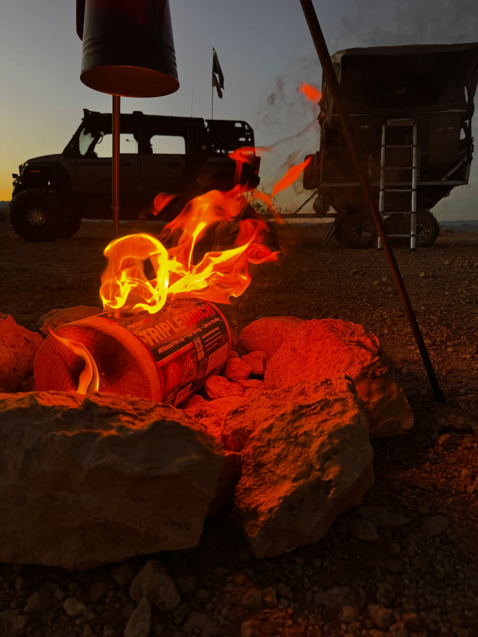 The spot we camped this time was open desert, with nothing but sagebrush for miles. The Timbertotes were compact and easy to pack a bunch of them with us. They’re also quite wind proof since they burn from the inside out. It was a little windy in the morning, but boiling up a pot of coffee over the fire wasn’t a problem. It would’ve been a bit more difficult with a regular campfire.