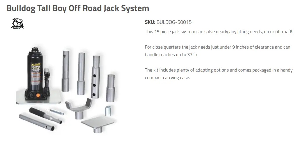 That's a nice jack but having a ADV2 it takes to much real estate to justify the price. In my XP I would just houst using my winch and a snatch block since there's always a tree around but I'm wanting to hit desert this coming year so thinking of options.I just got a new Pro Eagle off Marketplace that I keep under the back seat, haven't tried it out yet.