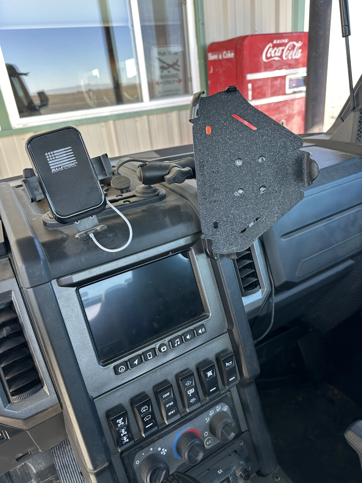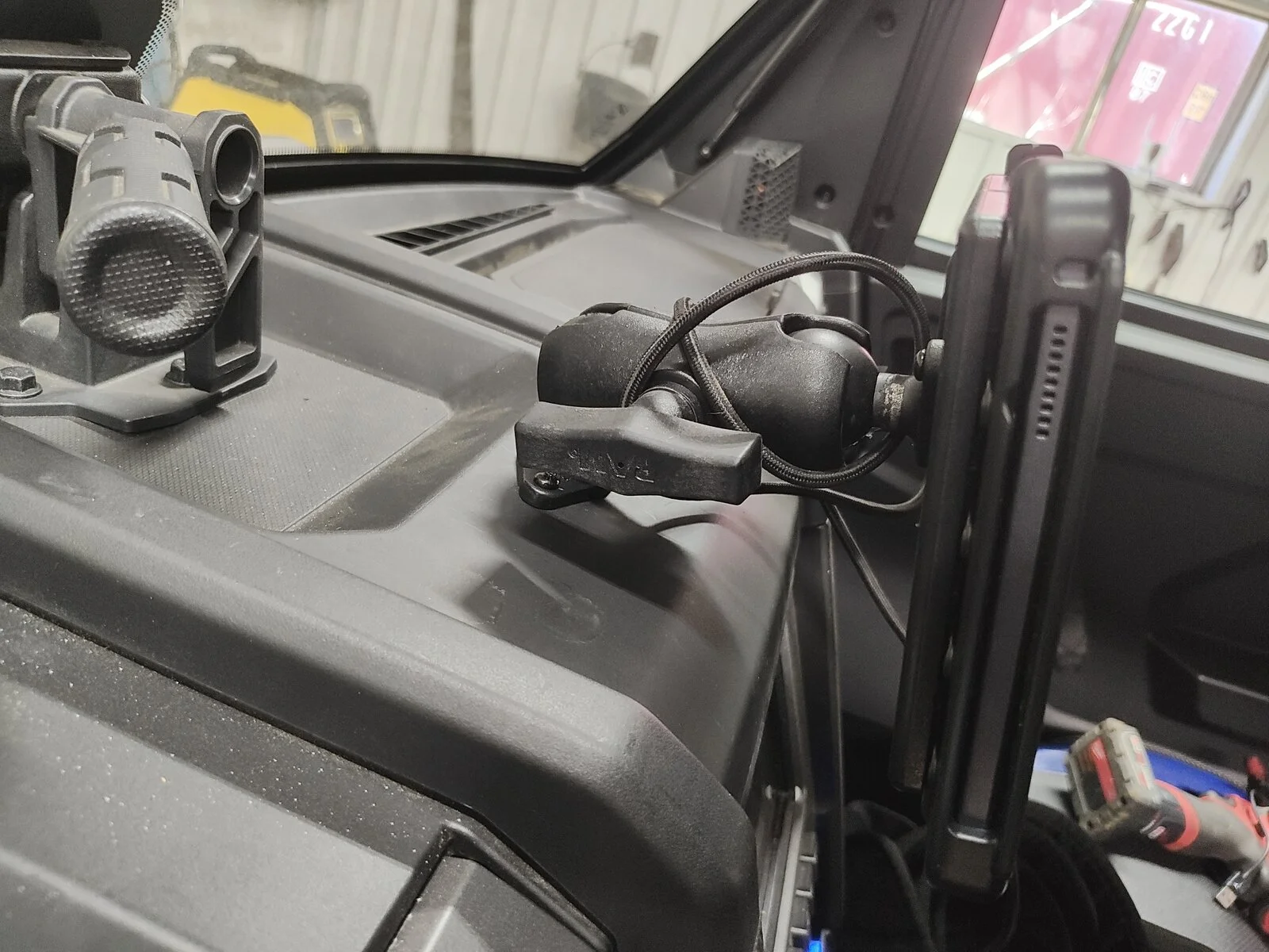 Easy tablet mount for 8" tablet. RAM HOL-TAB24U tablet holder, two 1.5" ball bases C size X002D09UHF and a RAM Mount Plastic 1.5'' Ball 2.25'' Double Socket Short Size Arm RAP-201U-B. Remove the window latch and two push pins. Drill hole and mount the base. Reinstall. DONE!