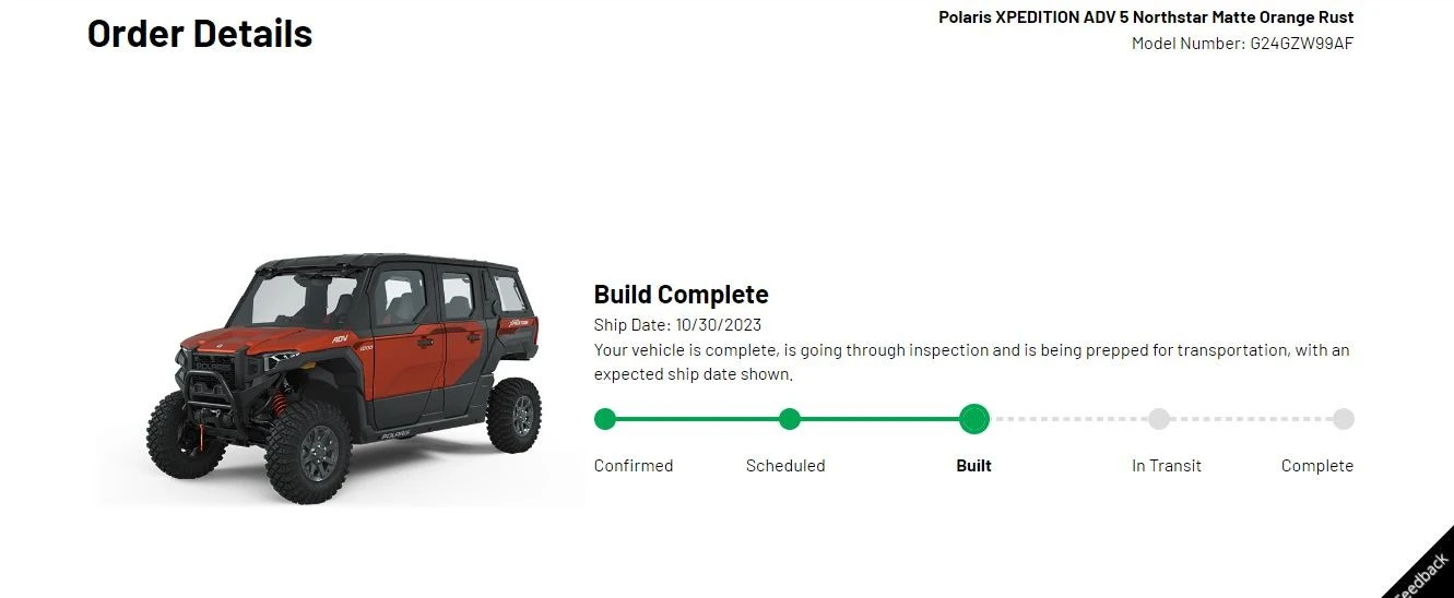 I like it!Welp.....no update on mine. Rolled back to confirmed and there she sits. Maybe for good reason. My dealer came through! In the world of Lord knows what's going on with Polaris and the ADV5 he got a blue ADV Northstar in and I picked her up! So color change for me, but I have a machine! And seeing the blue in person I kinda like it! Nice flat slate like blue.