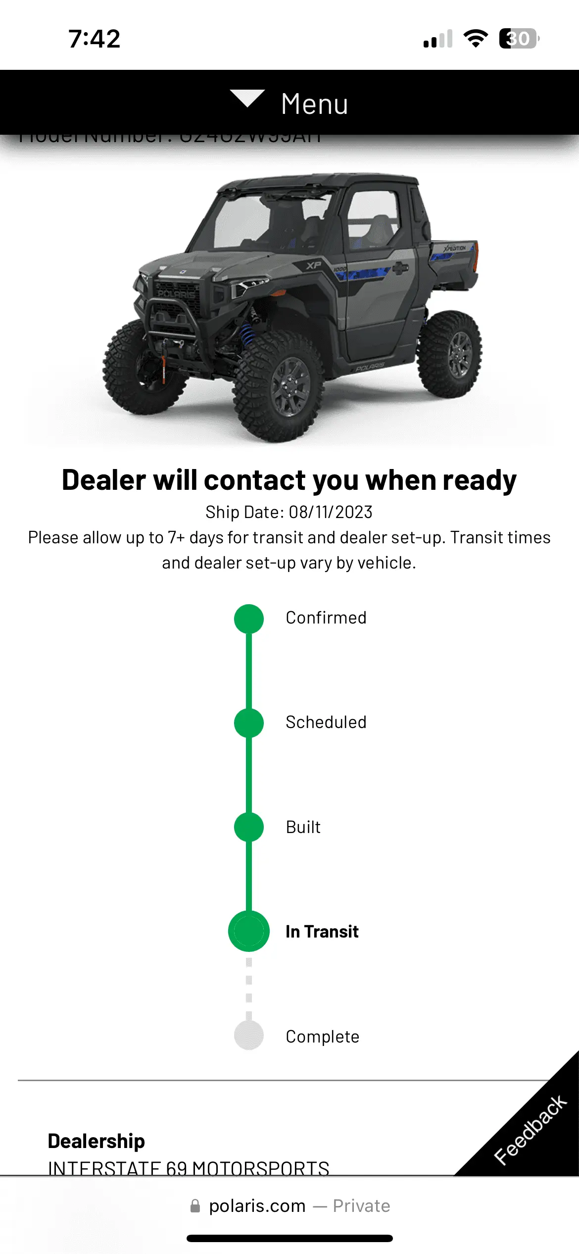 It's that damn on-line build progress page that F's with your head. I went from sitting at confirmed for the longest time to scheduled and then 24 hours later built. So as for the on-line page goes, knowing what I know now, I would take it as a grain of salt.