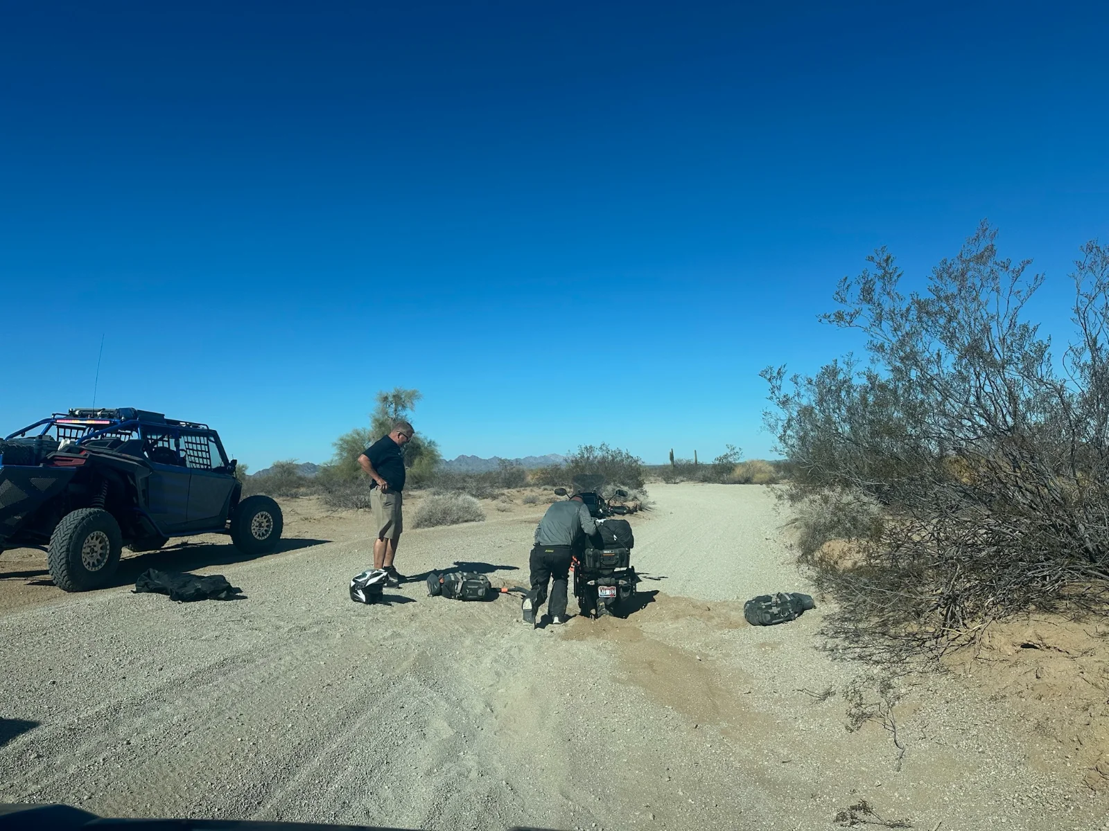 After breakfast and a drivers’ meeting back at the Agave Grill, the convoy rolled out under the early morning sun. The trail led riders through rugged, remote terrain — from sandy washes to lava-rock flats and deep into the Cabeza Prieta National Wildlife Refuge, one of the most isolated wilderness areas in the country.