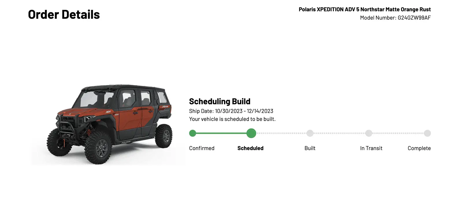 Just got the call my new ride is in for the 2nd time!!lol it will be a few days before i pick it up , ordered a few extra parts for it for them to install. Funny how I got it before the ship date above on 8/17 expected to ship 8/18! lolMy FIRSTEXPEDITION WAS DESTROYED IN THE PARKING LOT, So they ordered me a new one sucks cause I drove 5 hours just to have an asshat plow into the side and smash the frame, right after I signed the paperwork!!View attachment 362
